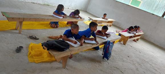 Salas de aulas sem merenda escolar, sem carteiras - crianças ajoelhadas estudando - Duro castigo!