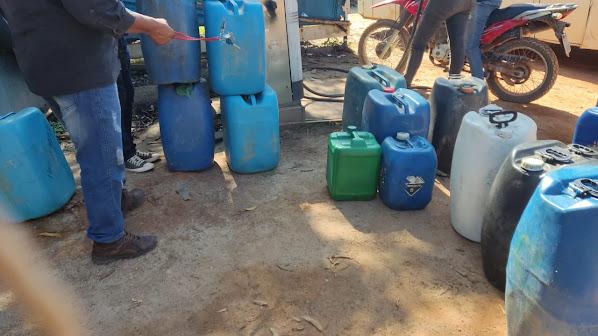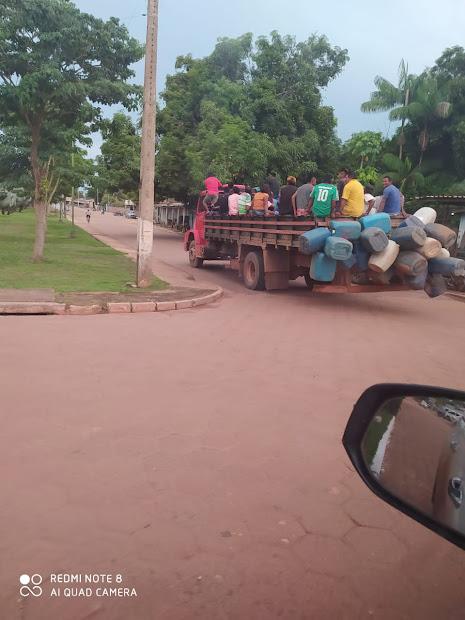 Distribuição de combustíveis para as escolas indígenas transportado com materiais e pessoas entre crianças e velhos em caminhão