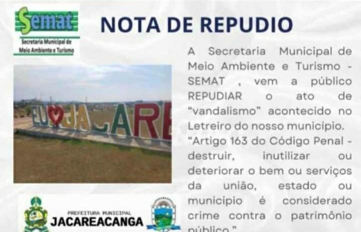 A onda destrutiva que fez ruir a edificação receptiva que proclama intenso amor por nossa cidade, foi o caminho mais fácil para intentarem satisfazerem-se com o que suas mentes entorpecidas apreciam que é a desordem e o conflito social, e a edificação EU AMO JACAREACANGA estando mais próxima, foi a bola da vez... quem manda não correr...!