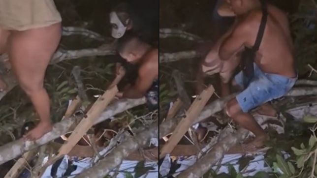 Imagens em redes sociais mostram o momento em que homens socorrem as meninas de uma casa de entretenimento adulto em Tabatinga, no interior do Amazonas.