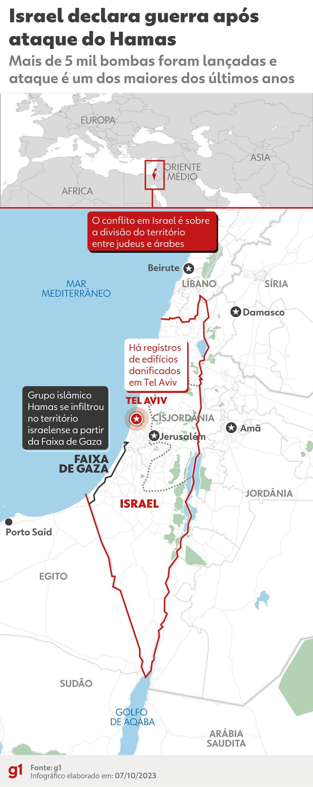 Neste domingo (8), o gabinete de segurança de Israel emitiu uma declaração oficial de guerra contra o Hamas. A medida permitirá ao governo decretar uma mobilização mais ampla de reservas militares, adoptar uma gama mais ampla de opções militares e obrigar o governo a identificar objetivos específicos em tempo de guerra.