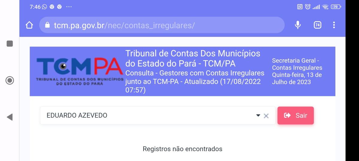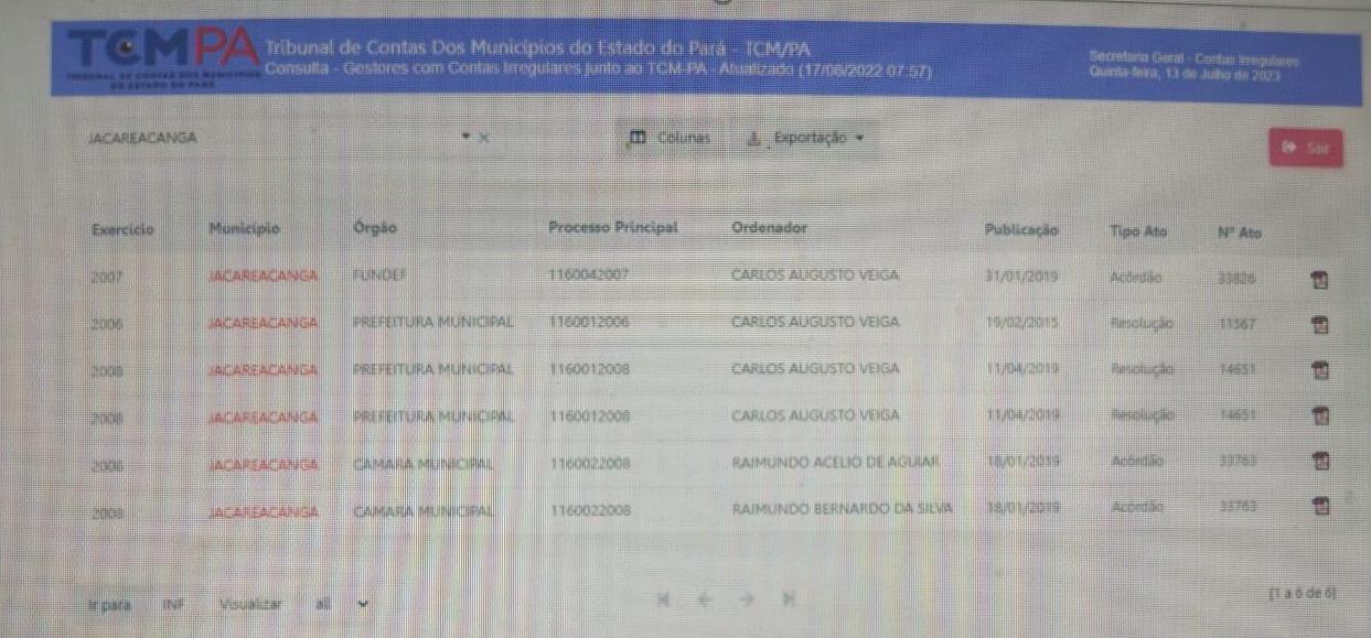 Para comprovação afixamos na presente postagem extrato requerido nesta manhã junto ao TCM (site) que registram os gestores de Jacareacanga que estão condenados a devolução de recursos.