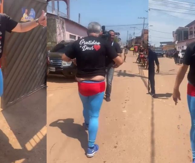 O radialista Wanderlei Modesto (PDT), que foi candidato a vereador no município de Iranduba, na região metropolitana de Manaus, pagou a aposta e desfilou de calcinha na manhã de hoje (12/10).